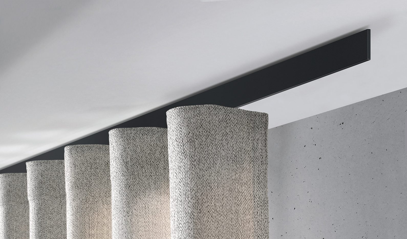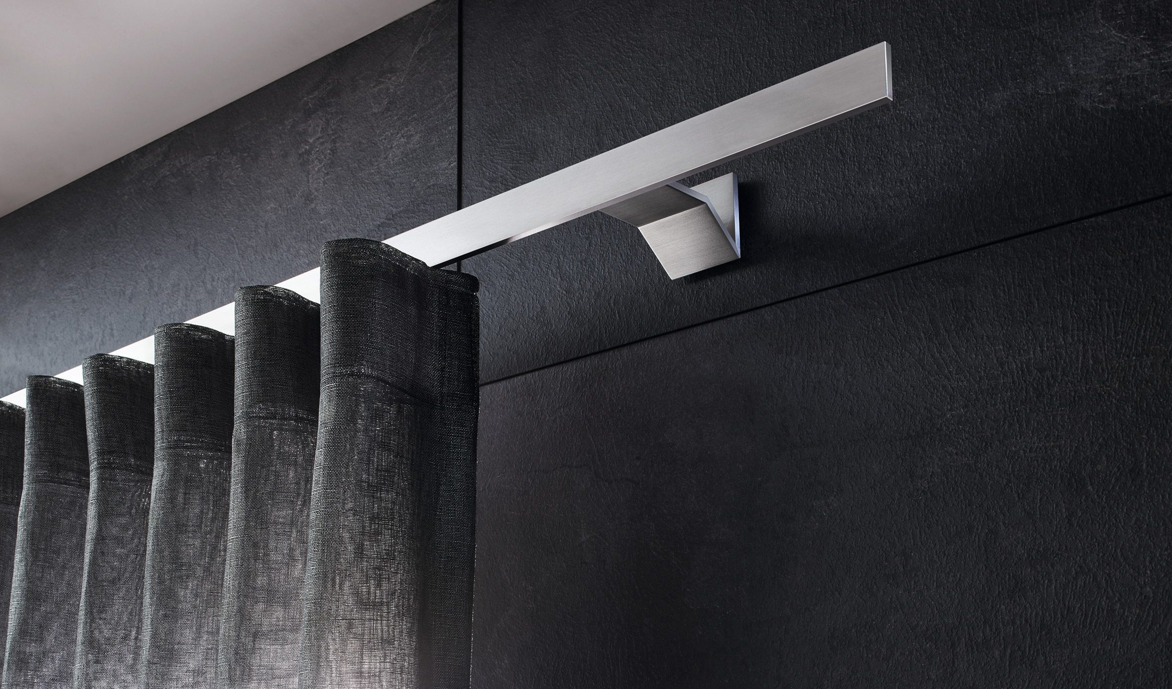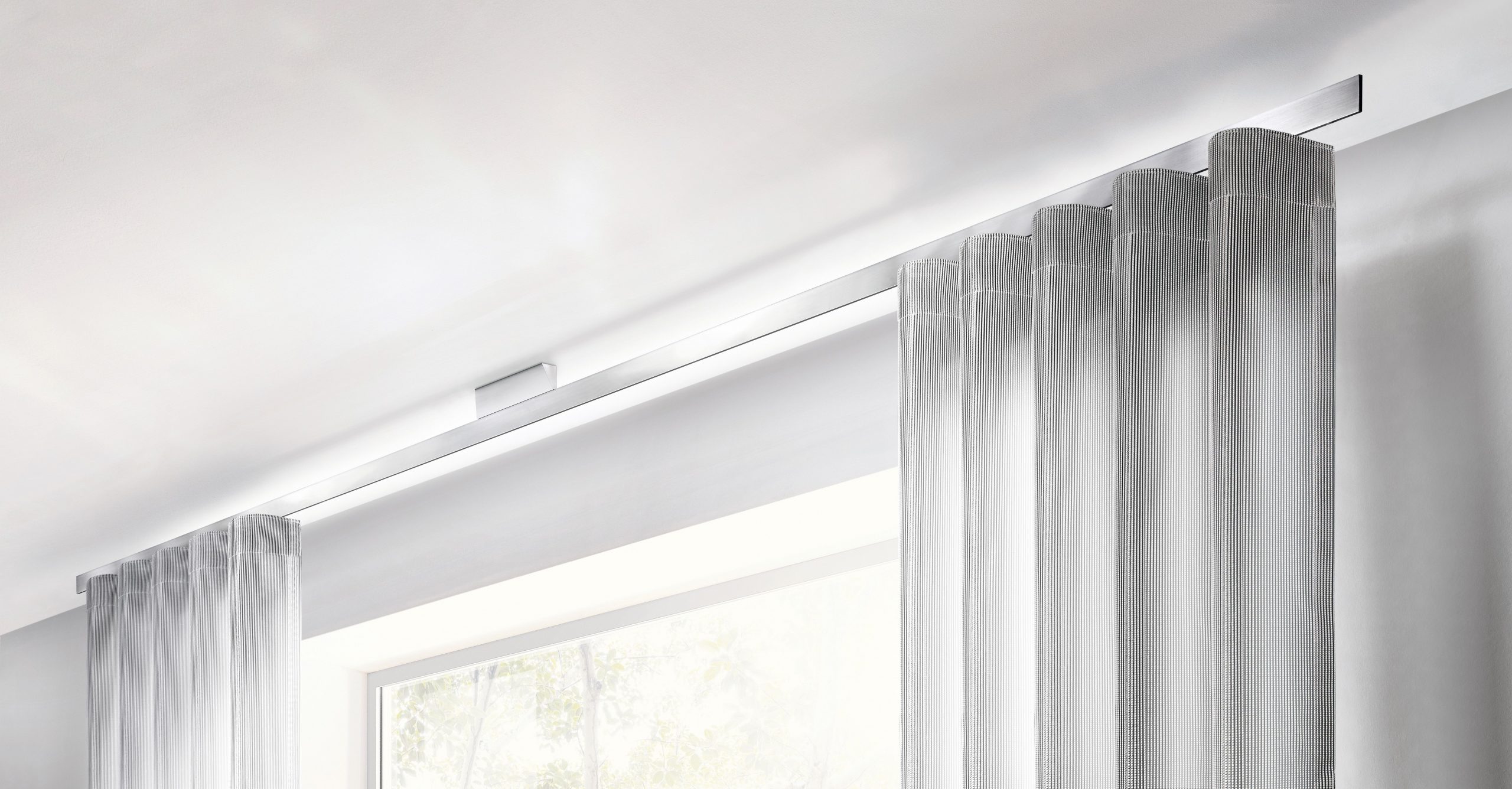 Darüber hinaus überzeugt die SMART.ELECTRIC-Kollektion mit einer optisch ausgereiften Elektroschiene. Die komplexe Antriebstechnik liegt vollständig hinter eleganten Blenden verborgen, sodass das klare Design erhalten bleibt. Die Vorhänge fahren über die gesamte Breite bis zum Anlagenende und bewegen sich dank der interstil-Gleitersysteme besonders leise und unauffällig.